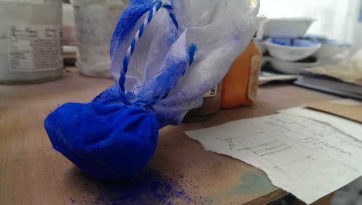 Voor fresco’s zijn speciale penselen in omloop. In Nederland zag ik ze nog niet, maar in Italië zijn ze volop te krijgen. Ze zijn gemaakt van varkenshaar, hebben een ruwe houten steel en de haren zijn omwonden met een rood wastouw.